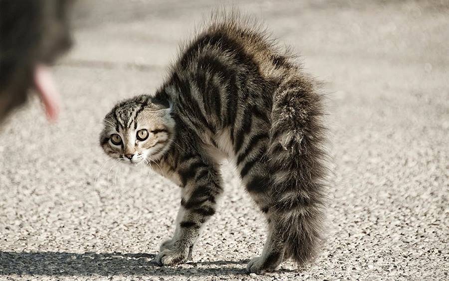 Животное пребывает в напряжении, испытывает злость, раздражение. Ему тяжело расслабиться. Бурно реагирует на любые внешние раздражители: может пищать, громко мяукать, бояться приближения к нему.