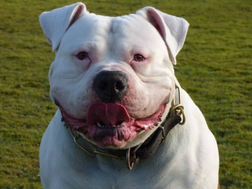 Прилегающая шерсть незначительна по длине – до 2,5 см. Популярны белые цвета, палевые и красные оттенки. Это четко можно обнаружить на фото американского бульдога.