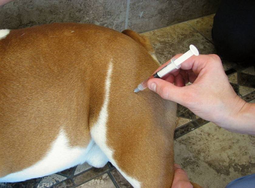 - мышцы животного не должны быть напряжены: собаку рекомендуется успокаивать, помять область для укола, лапу подогнуть;