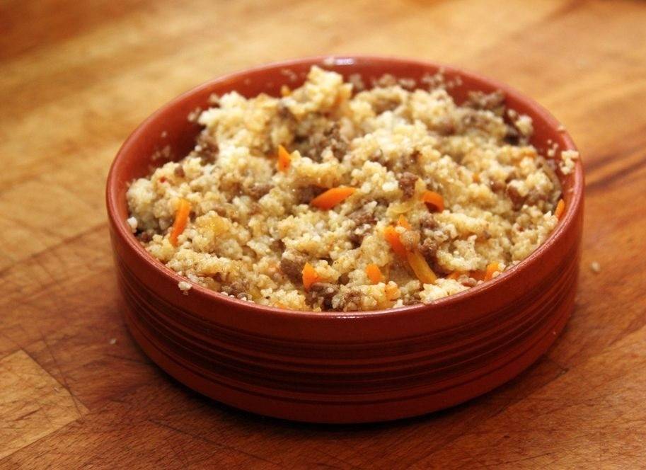 - Углеводы. Разнообразие каш с добавлением маленьких кусочков мяса.