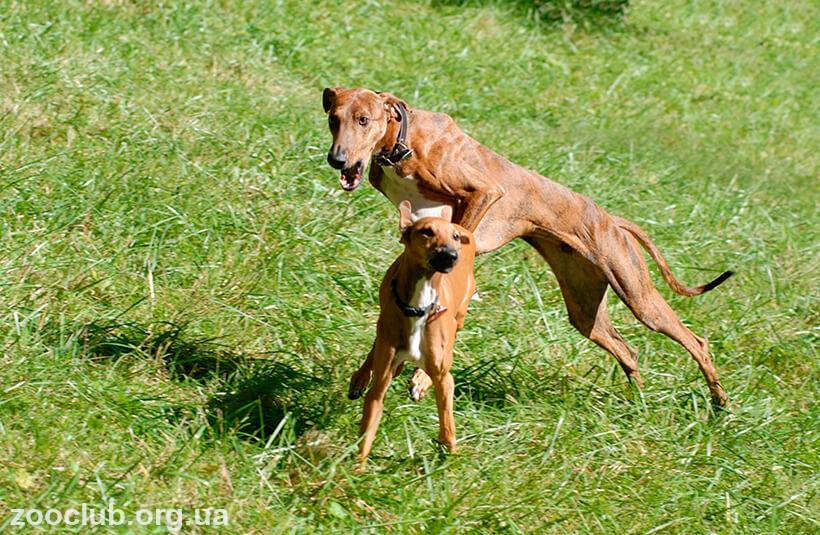 Если ежедневно выезжать с ним в лес нет возможности, придется организовать другие спортивные нагрузки. Охотничьи борзые собаки – отличные прыгуны. В момент совершения прыжка задействуются все мышцы их тела. Зверь способен преодолеть расстояние более 1,5 метров в высоту, только лишь отталкиваясь задними лапами от земли.