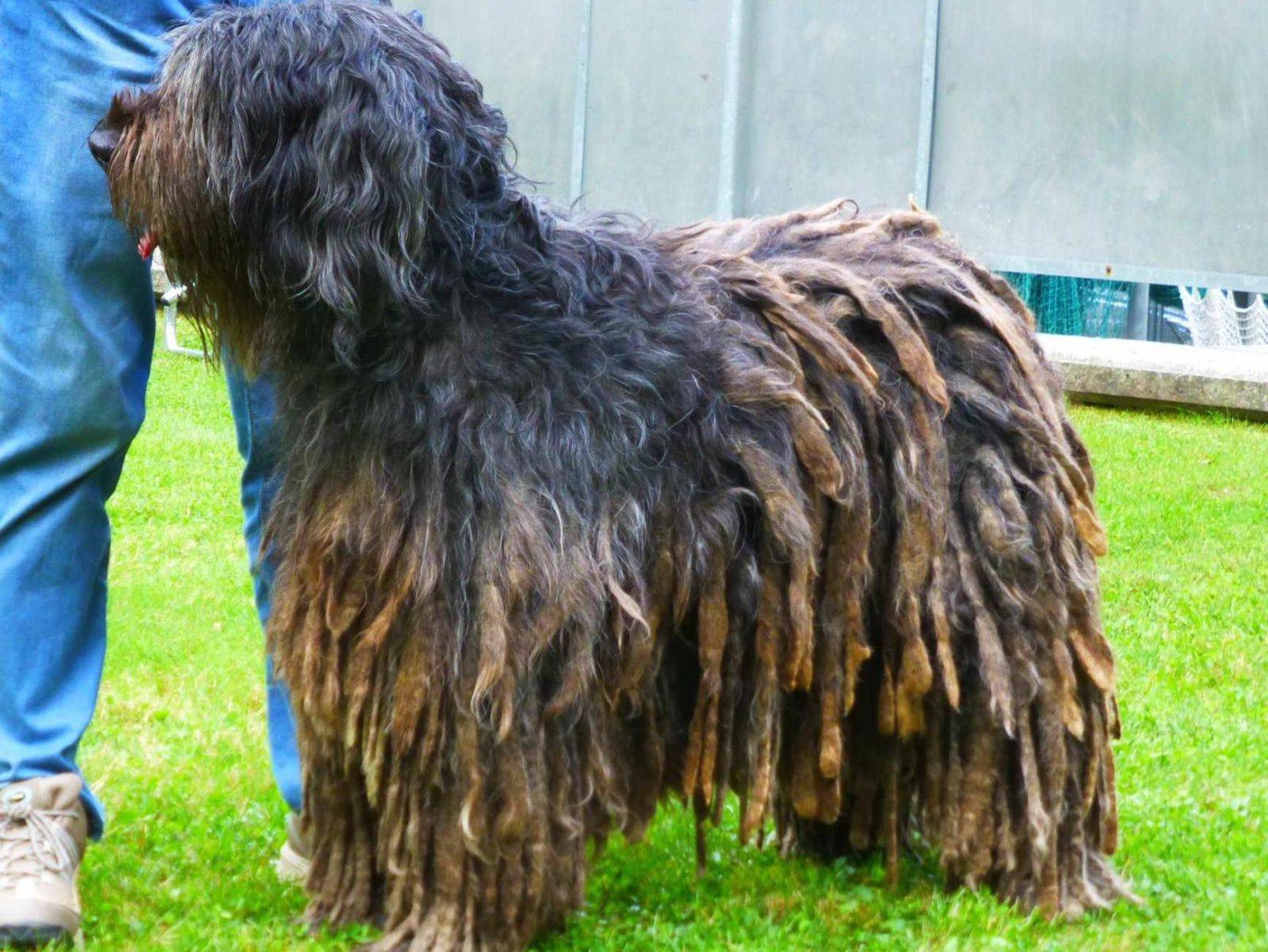 Шнуровые дреды, свисающие со спины, растут в течение всей жизни и могут доходить до земли. На ногах шерсть мягче, ниспадает прядками. Более короткий шерстяной покров на голове, но пряди падают на глаза, а также закрывают морду и уши.