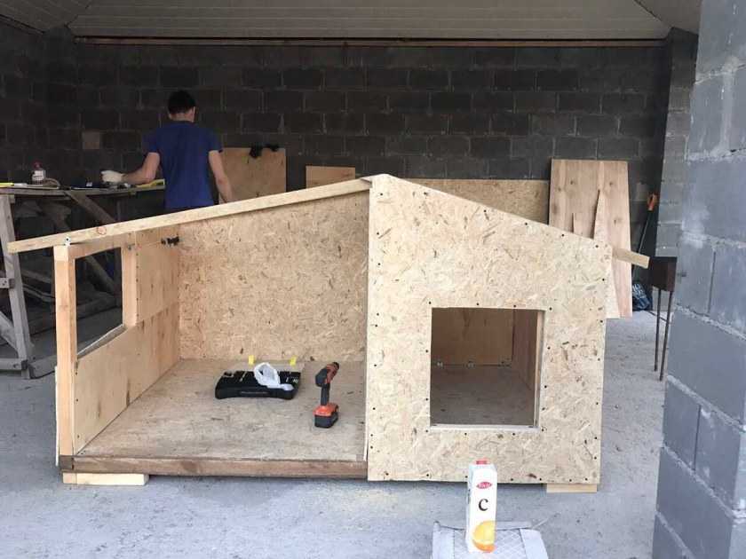 Простой способ изготовить дом для собаки — обшить фанерой или ОСП деревянный каркас из бруса. Эти материалы недороги, экологически безопасны, легко обрабатываются.
