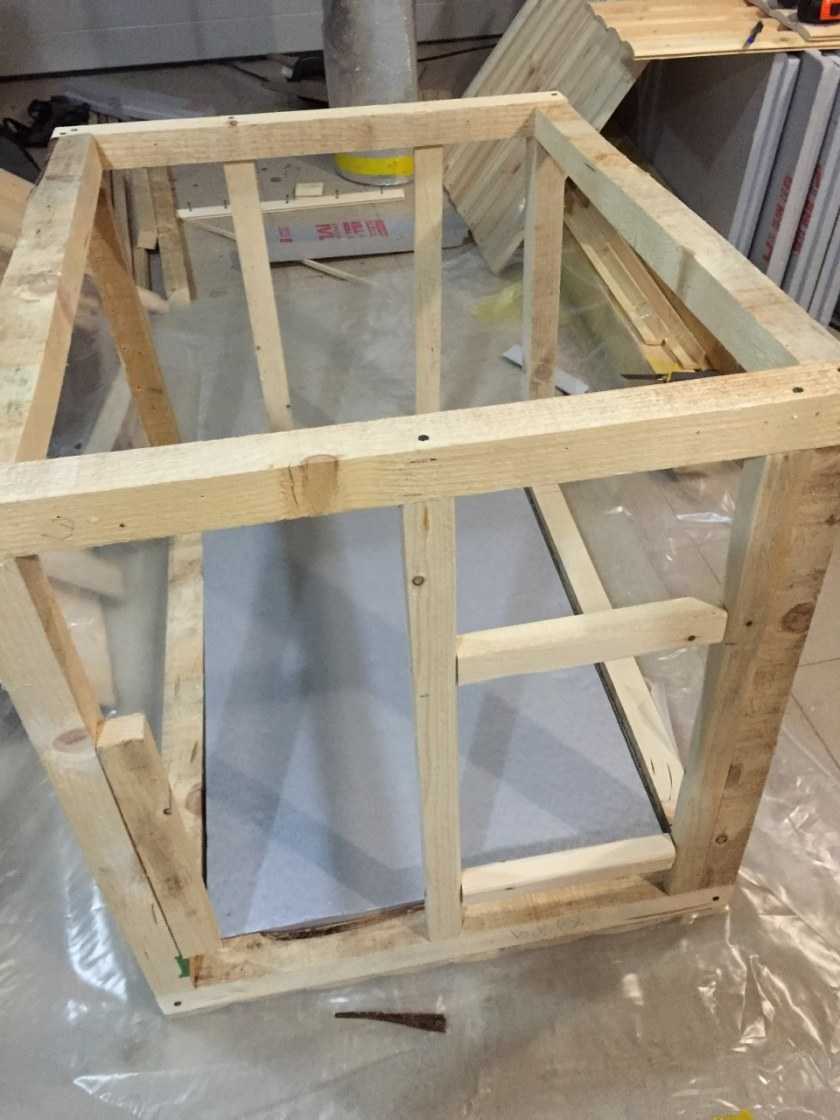 Наличие пола, тем более приподнятого над землей, обязательное условие. Для этого ножки должны иметь определенную длину, с учетом высоты пола над уровнем земли. Можно сбить раму, уложить утеплитель, а затем зашить его досками.