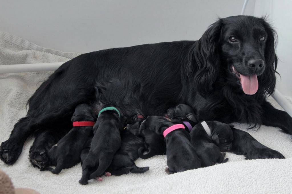 8-я неделя (54-58-й день) – у суки наблюдаются частые вылизывания, а также она занимается поиском будущего места для родов. Перед непосредственными родами температура собаки резко понижается до 35 градусов