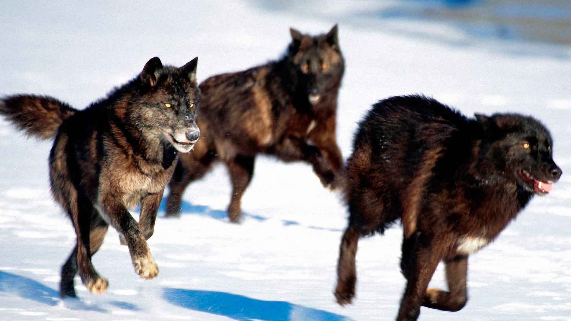 Передвигаясь по глубокому снегу, волки время от времени меняются местами, и идущий впереди, утомившись, уступает место другому.