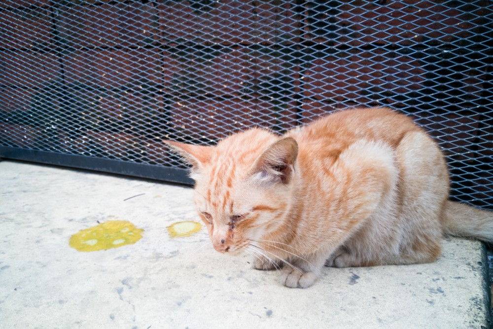 Красный цвет рвоты может свидетельствовать о том, что у кошки кровотечение внутренних органов. Желчь также плохой знак.