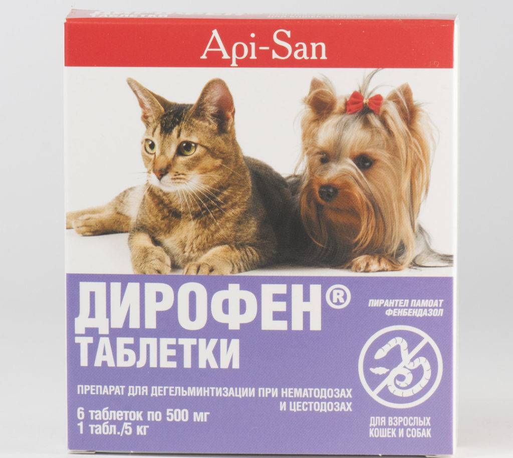 - Дирофен. Можно давать взрослым котам и котятам. Выпускается в форме суспензии, пасты и таблеток.