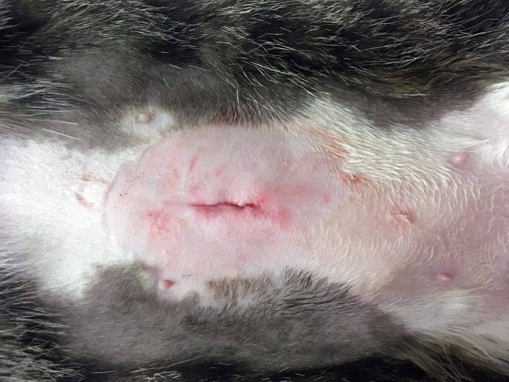 Шов обязательно должен быть защищен от влияния внешней среды и зализывания самой кошкой.
