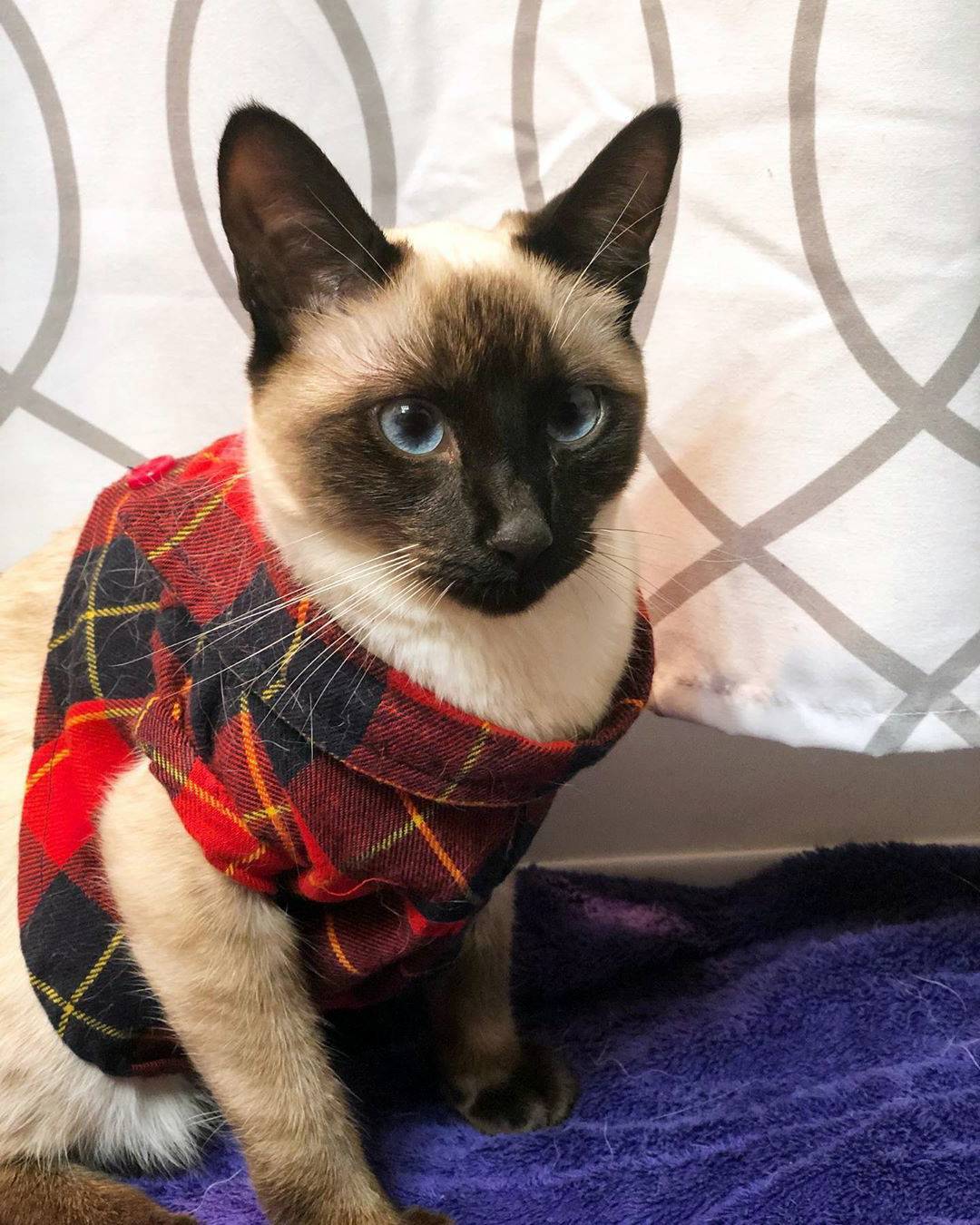 В холодное время года бесшёрстные породы кошек мёрзнут и рискуют простудиться. Заботливые владельцы сфинксов и корниш-рексов одевают на своих любимцев тёплые безрукавки. Мягкая ткань с небольшим ворсом отлично защищает от ветра и согревает животное на прогулке. Ещё лучше — вязаные шерстяные попонки, облегающие туловище. Такое изделие заменяет усатому другу собственный мех.