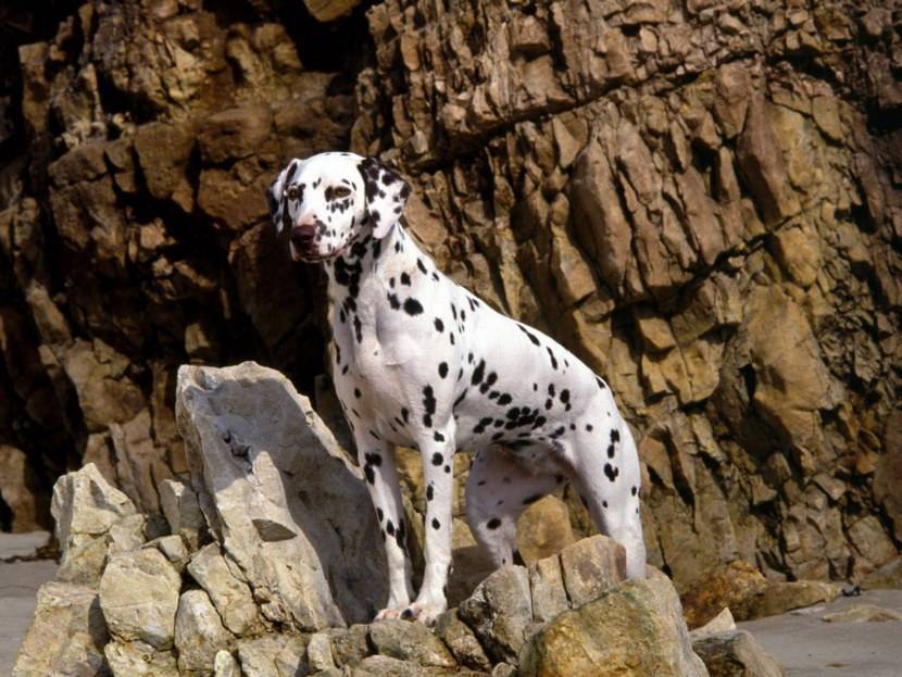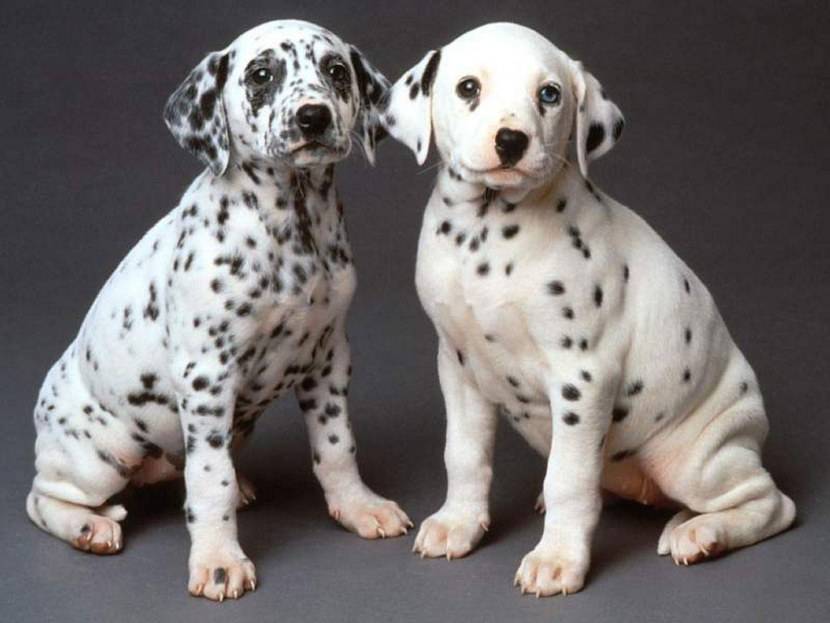 Отличительная черта породы далматин – пятнистая расцветка. Фон всегда белый, пятнышки – черные либо коричневые.