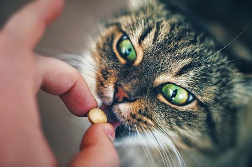 Если выбор пал в виде таблеток, дозу определяют из расчета 1 пилюля на 10 кило от общей массы животного. Лекарство кладут на корень языка, чтобы животному легче было проглотить либо предварительно измельчают и добавляют в еду. Малышам таблетированное лекарство не рекомендуется, поскольку подсчитать точное количество трудно