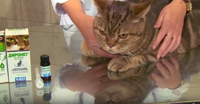 Никакой предварительной подготовки (очистительной клизмы, специальной диеты) перед приемом «Диронета» не требуется. Препарат можно подмешивать в еду (таблетку следует растолочь) или класть/вливать в рот принудительно, если пища с лекарством питомцу не нравится. Большой кошке допускается давать суспензию частями с небольшими временными перерывами.