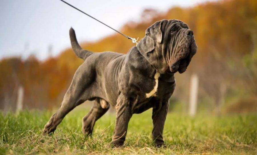 Так же, как и кане корсо, неаполитанские мастифы использовались в гладиаторских боях (травля диких животных). Характерная особенность – висячие уши при их высокой постановке и морщины на лбу. Используется в качестве сторожа, однако уровень агрессии – низкий. Шерсть – гладкая (у сук). Могут быть упрямыми, имеют склонности к доминированию. Достигают в высоту 75 см, вес – до 70 кг.