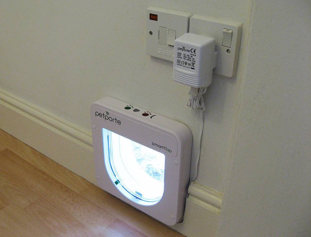 В продаже можно увидеть изделия, оснащённые электронной дверью для кошки, изготовить его своими руками не удастся. Приспособление компьютеризировано, в комплекте с электронным устройством идёт ошейник, который надевается на животное. На дисплее включается программа, идентифицирующая именно этот ошейник и пропускающая в дом только того питомца, на котором собственно он надет.