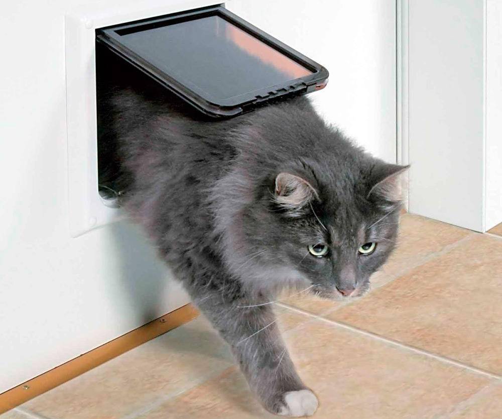 Конструкция представляет собой небольшой тоннельчик, который вставляется в дверное полотно, и двух дверок с каждой его стороны. Плотный ободок по периметру этого сооружения препятствует проникновению холода, запахов и пыли внутрь помещения. А чтобы следом за хозяйским котом не последовали незваные гости, существуют дверцы со специальными датчиками. Правда, коту придется постоянно носить с собой ключ: ошейник, в котором установлен микрочип. Как только животное будет приближаться к двери, замок срабатывает, и дверь открывается.