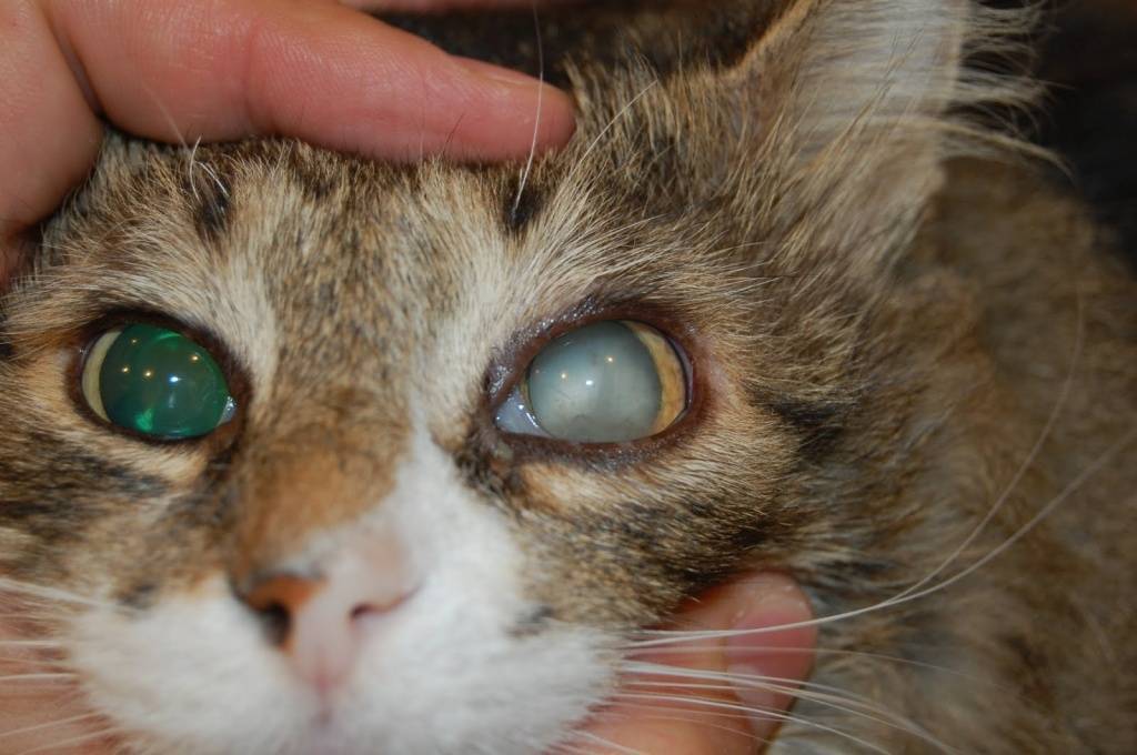 Из-за этого кошка становится пугливой, порой агрессивной. Глаз может стать полностью непрозрачным, проявится бельмо.