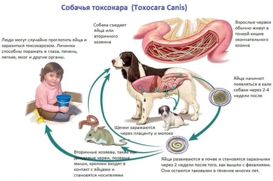Матери – в процессе вынашивания щенков, личинки глистов обладают способностью проникать через фето-плацентарный барьер в организм плодов. Гельминты попадают в организм и новорожденных малышей в момент кормления молозивом или молоком