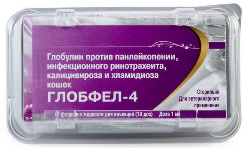 Глобфел-4 (Globfel-4) — это препарат, предназначенный для профилактики и лечения ринотрахеита, кальцивироза, хламидиоза и чумки (панлейкопении). Производителем сыворотки является российская компания ООО «Ветбиохим».