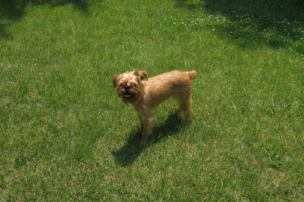 - Брюссельский гриффон. Имеет жесткую шерсть средней длины с удлиненными волосками в области носа, а окрашена она в большинстве случаев в рыжий цвет.