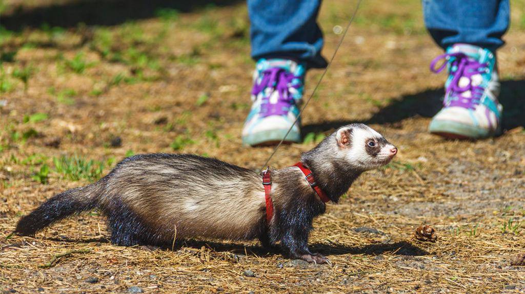- с хорьком можно гулять на улице, надев специальный поводок;