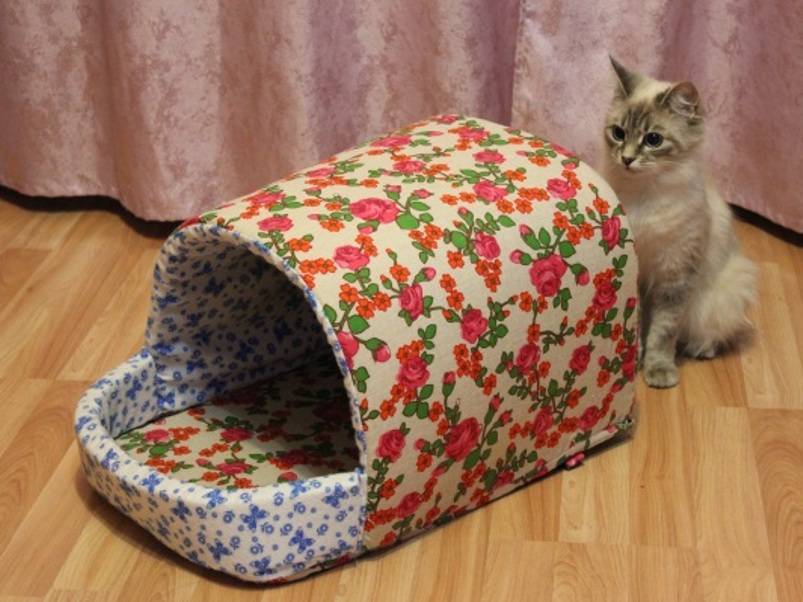Поролоновый домик своими руками требует не только владения иголкой и ниткой, но и отличной дизайнерской задумки. Изготовить такое местечко для любимца можно из любой плотной ткани.