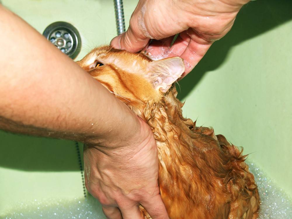 - Выкупать кошку с шампунем (не противоблошиным!) для животных. Дождаться, пока она обсохнет.