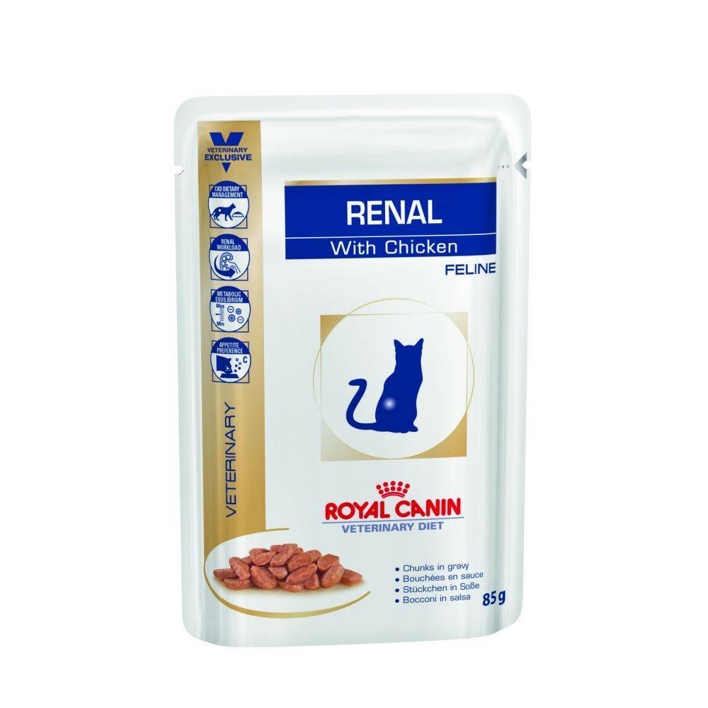 - Royal Canin Renal Special RSF 26 — диета для взрослых кошек с хронической почечной недостаточностью и плохим аппетитом.