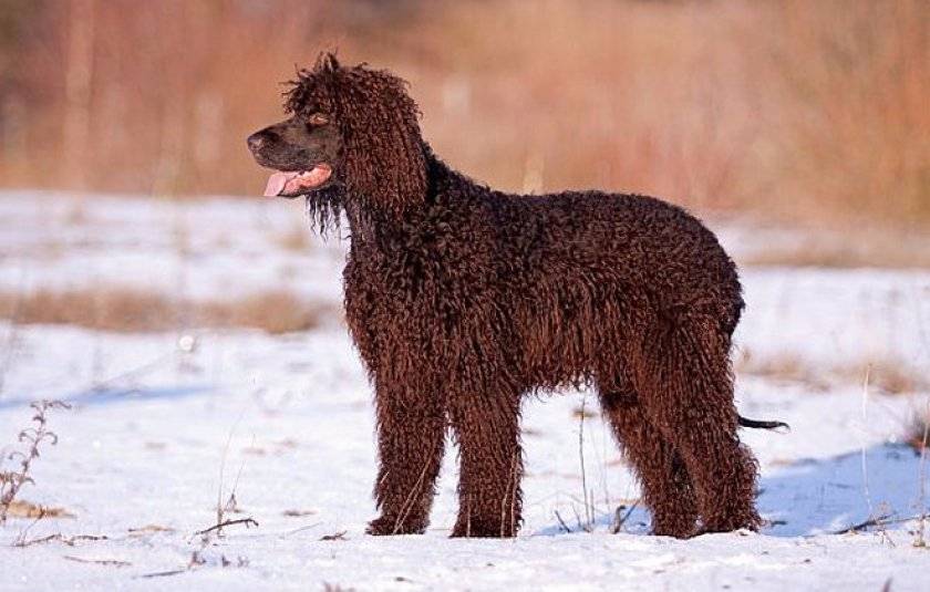 Наивысший по показателям роста из общей породы — ирландский водяной спаниель — очень умный, хорошо поддающийся тренировкам, отлично ладящий с детьми пес с высокоразвитой координацией на любой местности.
