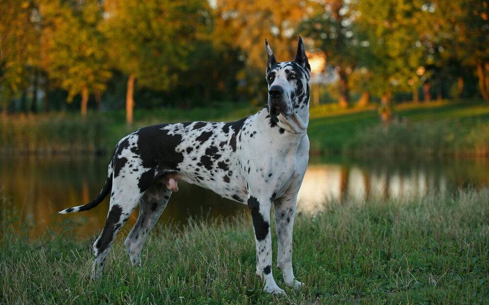 Считается самой крупной из разновидностей. Рост — до 90 см, вес — 50 кг. Имеет стройное, поджарое тело, длинный саблеобразный хвост. Спокойный, хладнокровный нрав делает дога прекрасным сторожем и компаньоном. Варианты окраса очень разнообразны: черный, арлекин, мраморный, палевый, голубой, тигровый.