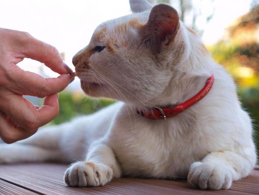 Таблетку следует разделить на 4 — 6 небольших порций и замаскировать в кусочках колбасы, сыра или другой любимой еды кошки. Если препарат не теряет своих свойств, то таблетку можно растереть в порошок и смешать с любимым лакомством питомицы. Чаще всего такая хитрость срабатывает в отношении непривередливых в еде животных.