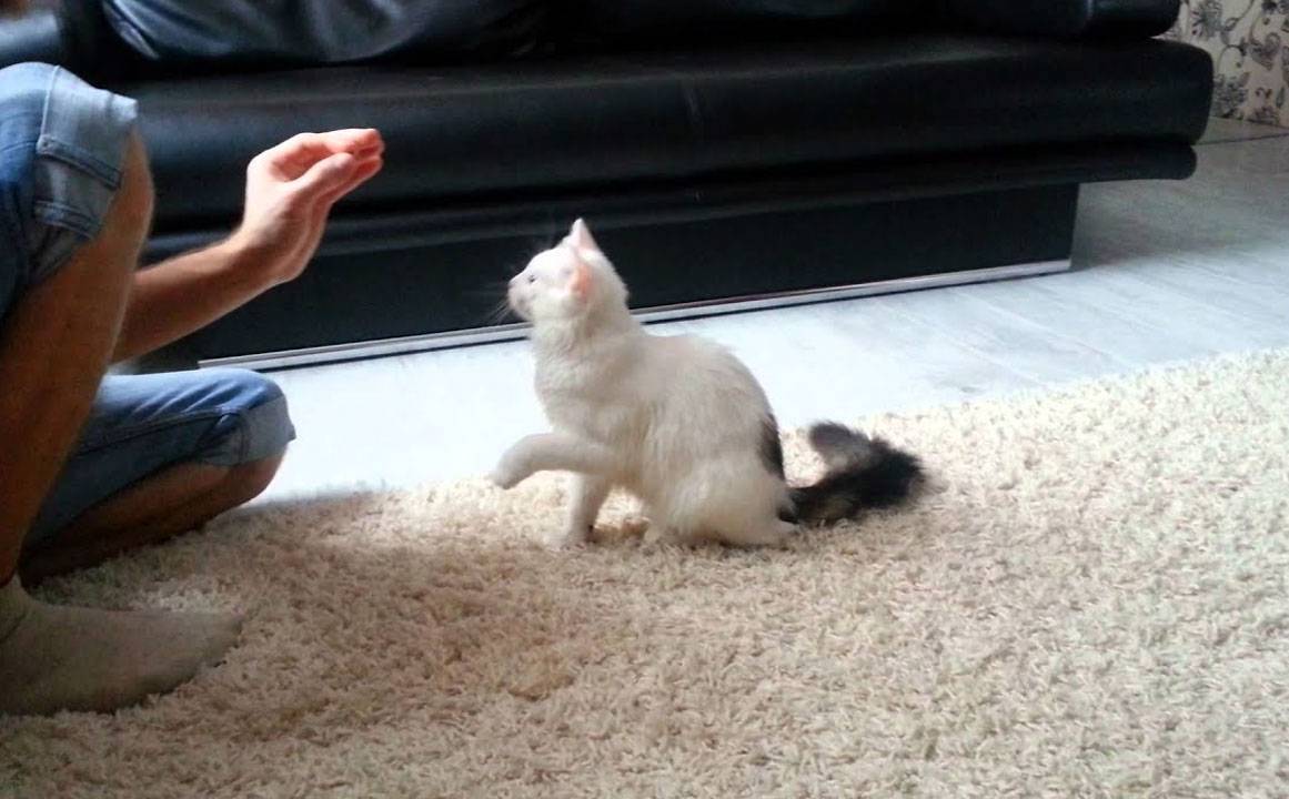 Когда животное подошло на зов, хозяин командует «Ко мне», потом кормит лакомством. Если повторять «Ко мне» ежедневно, скоро котенок научится подходить на зов.