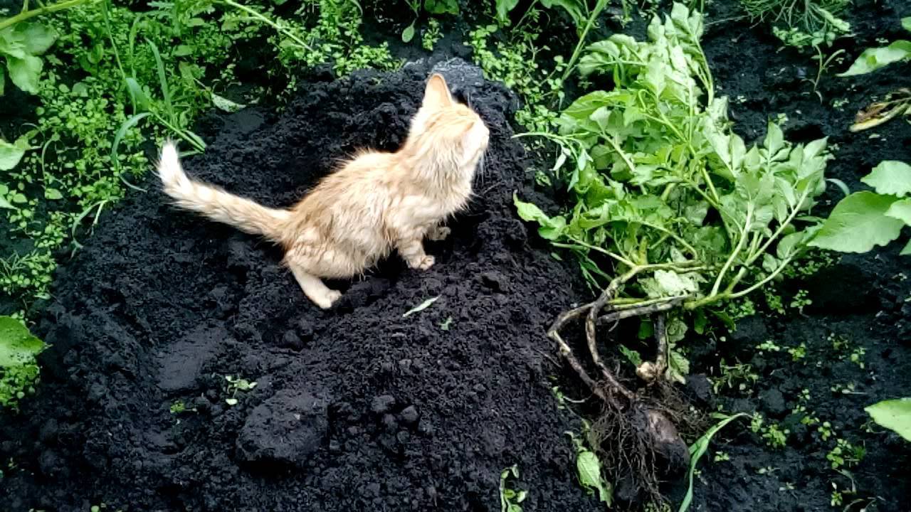 Соседский котенок делает свое дело прямо на грядке
