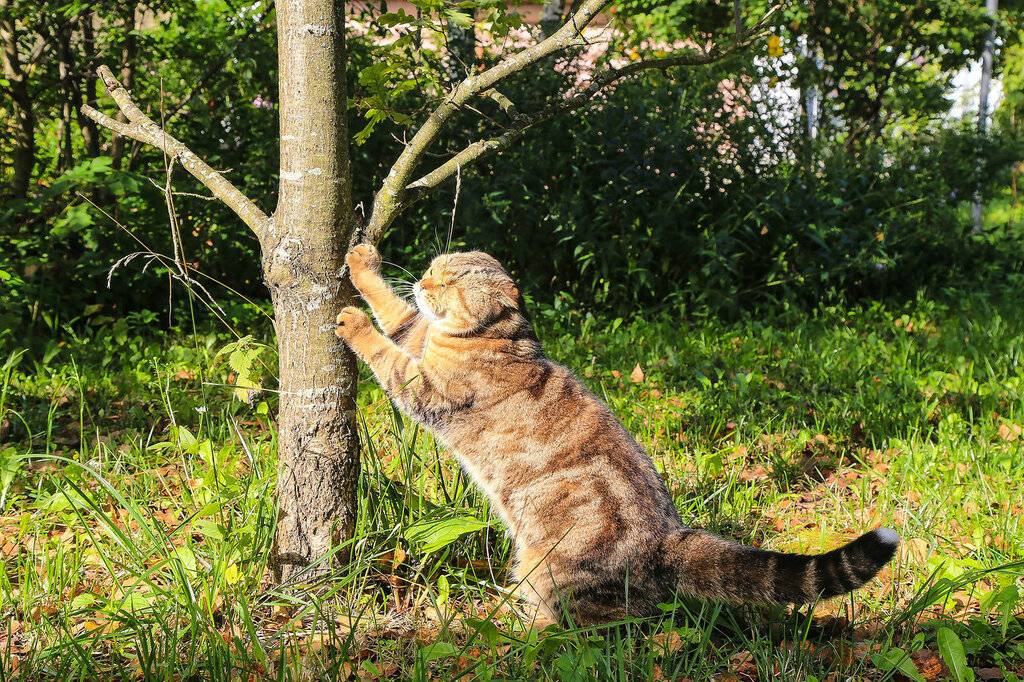 - Кору плодовых деревьев коты нередко используют как когтеточку.