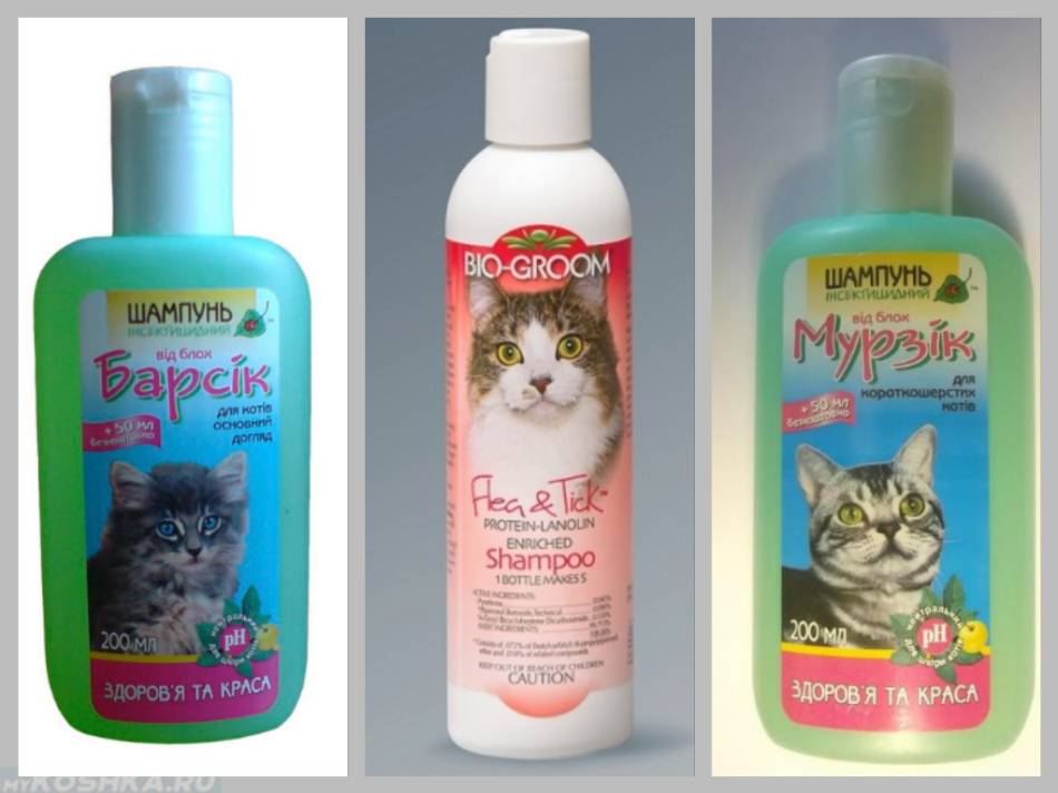 Жидкие. С их помощью шерсть животного становится мягкой и шелковистой. Для одного раза требуется небольшое количество этого средства, так как оно даёт много пены, смыть которую затруднительно. Сухие. Когда маленький питомец сильно боится воды, то можно помыть котёнка сухим шампунем (пудрой). Это хороший выход из положения, и хотя он не сможет приучить малыша к воде, но при панической боязни такое средство следует использовать. Оно очищает шерсть животного не хуже обычных жидких шампуней. Его наносят на сухую кожу питомца, а затем с помощью расчёски вычёсывают с шерсти вместе с грязью. Такие шампуни используют для котят старше 3 месяцев. Шампуни-спреи. Они наносятся на мокрую шерсть животного и в меньшей степени сушат кожу