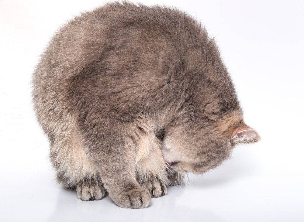 - принятие кошкой несвойственной ей позы – животное сидит на задних лапах, приподнимает хвост и старается потереться анальным отверстием о любую твердую поверхность.