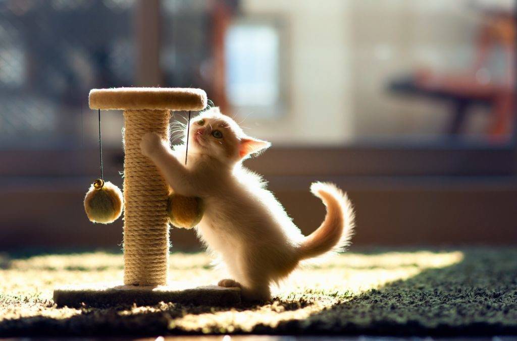 Потребность точить когти впервые проявляется у котят в возрасте около полугода. Это лучший момент, чтобы приучить питомца к когтеточке. Придется купить сразу несколько таких приспособлений, чтобы разместить их по всей квартире (преимущество следует отдавать местам, где малыш уже пытался точить коготки).