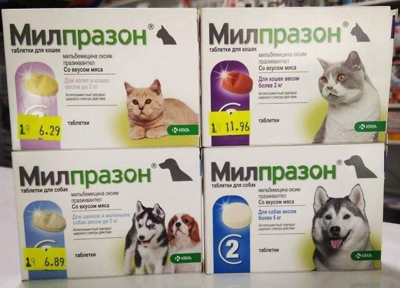 Милпразон, на упаковке которого есть маркировка специально для кошек, весящих от 2 кг, по инструкции отмеряют таблетки следующим образом: