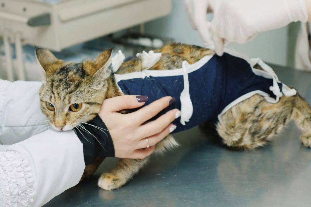 Чтобы восстановительный период прошёл гладко, нужно, чтобы хорошо заживал шов, неизбежный при полостных операциях. Кошкам свойственно вылизываться, и чтобы питомица не лизала шов, ей придется поносить специальный воротник, либо попону – в зависимости от места расположения шва. Сколько носить защиту скажет врач – как правило, до 10 дней. Ходить в воротнике или попонке кошка должна только по дому – выходить на улицу не стоит, чтобы не пострадать при контакте с животными. Выход за пределы дома или квартиры должен предварительно одобрить врач.