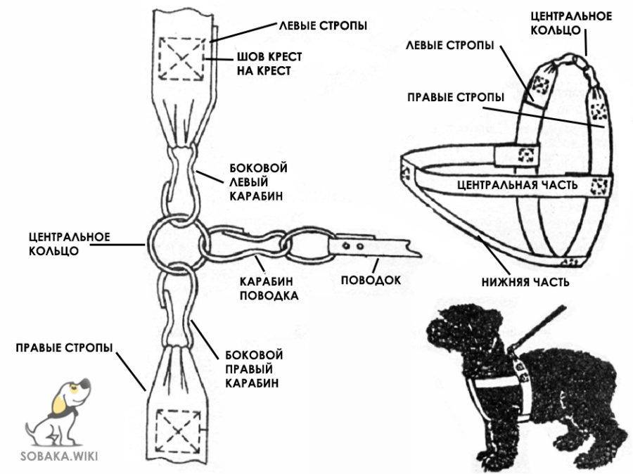 Отличие ее в том, что она крепится не на шее, а на корпусе животного. Чаще всего ее изготавливают из кожи или крепкой материи в виде ремней, которые опоясывают грудь и тело собаки, соединяясь между передними лапами по хребту.