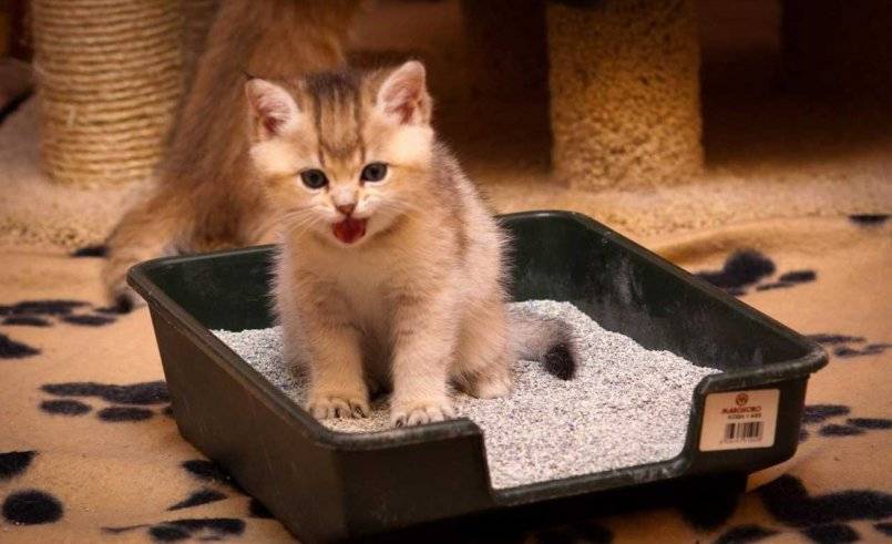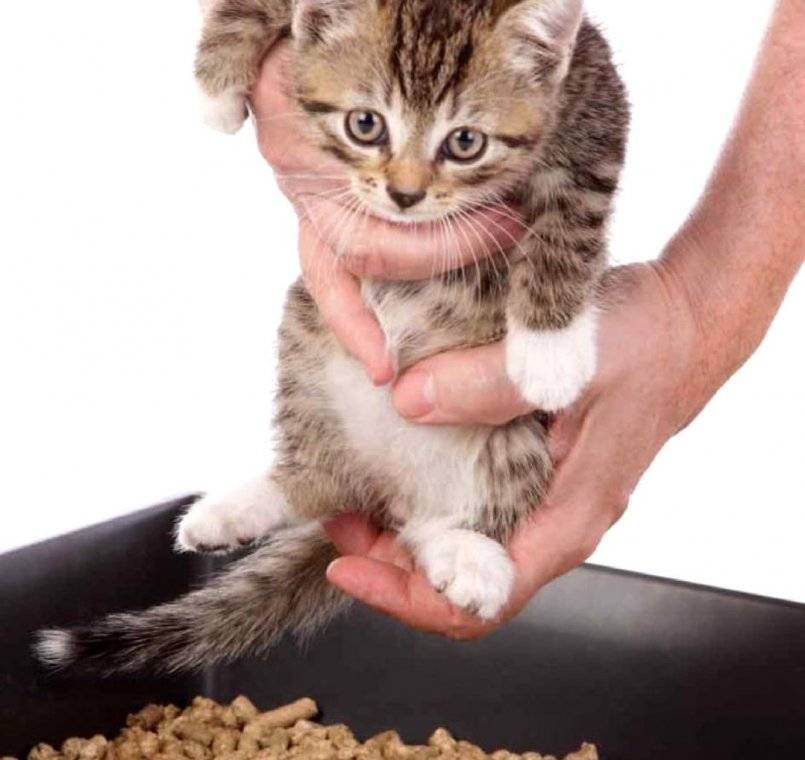 Когда питомец успокоится, его помещают в лоток и пробуют копать его лапкой в наполнителе. Если в туалете присутствует еще и знакомый запах, малыш быстро поймет, для чего он нужен.