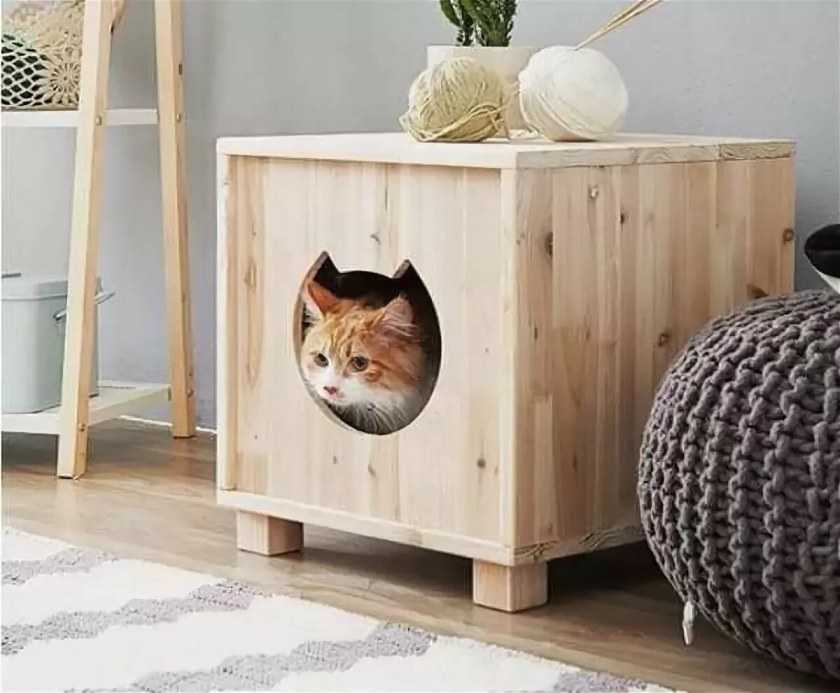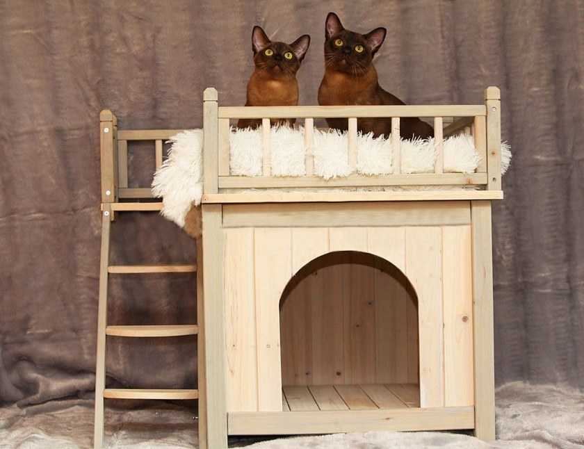Изготовленные из различных материалов домики-будки могут стать не только убежищем для пушистой любимицы, но и украшением интерьера.