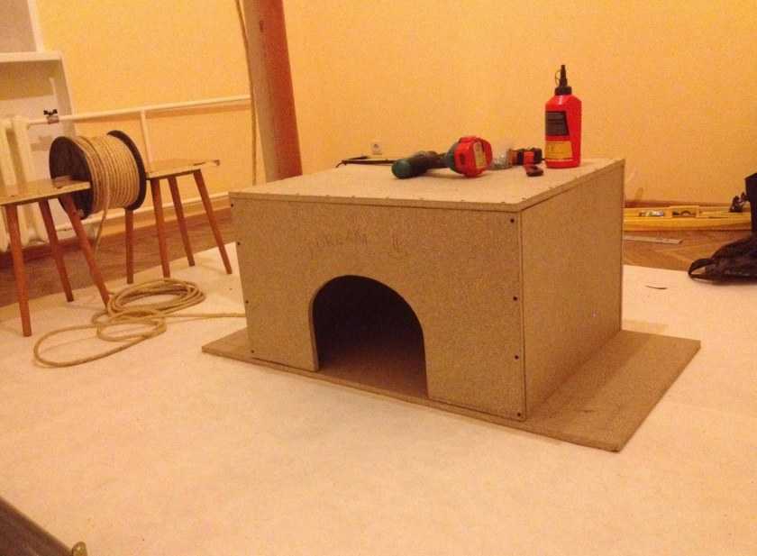 Домик для кошки из фанеры — это серьезное, трудоемкое и сложное занятие. Для качественного строительства необходимо определять определенными навыками планирования итоговой конструкции, правильного крепления