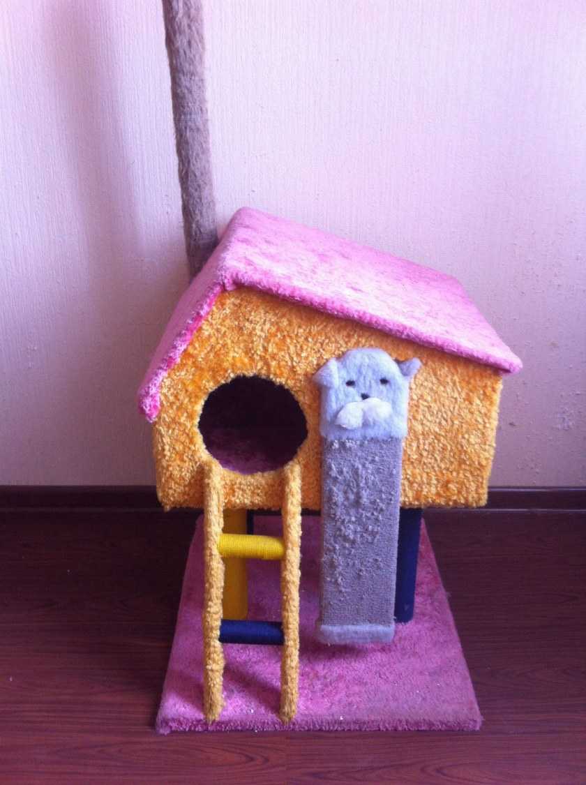 Многоуровневая конструкция удобна тем, что удачно объединяет в себе и игровую площадку, и зону отдыха. Расположенные на разной высоте перекладины и подставки удобны для выполнения «пируэтов», когтеточки – для стачивания острых коготков, а уютный домик – для уединения питомца во время отдыха.