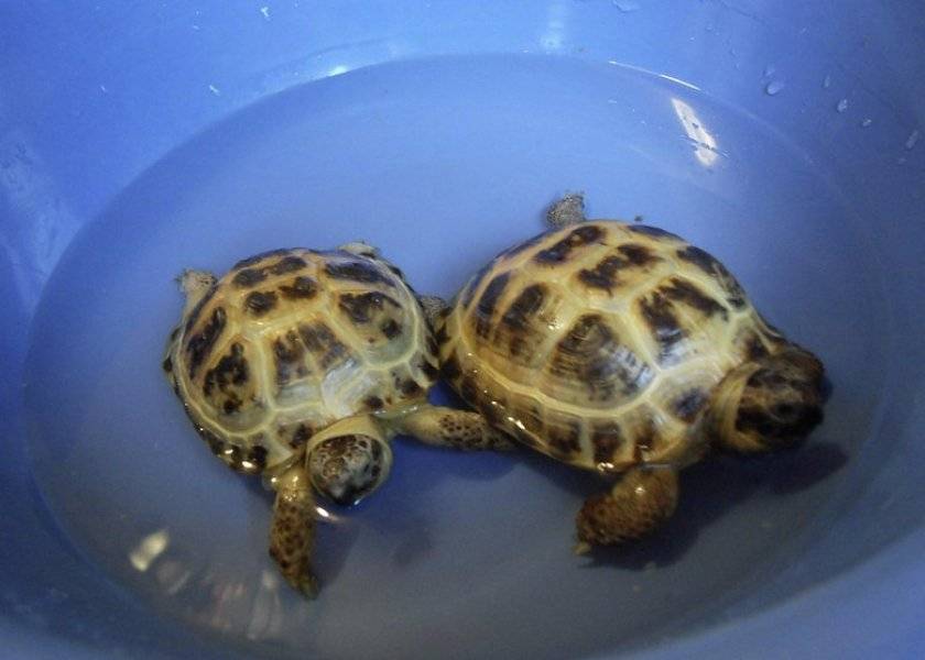 Воду рептилия любит. Купать ее необходимо раз в неделю, в теплой воде (температура около +25 °C). Наливают жидкость в небольшую емкость, на уровни пять-семь сантиметров, но не выше шеи. Во время купания черепаха не только моется, но и пьет (кроме традиционного способа, она также сорбирует влагу через кожу). Стандартное время процедуры — до получаса, черепашка сама попросится наружу, когда ей надоест. Считать, что купание нужно просто чтобы смыть пыль — опасное заблуждение