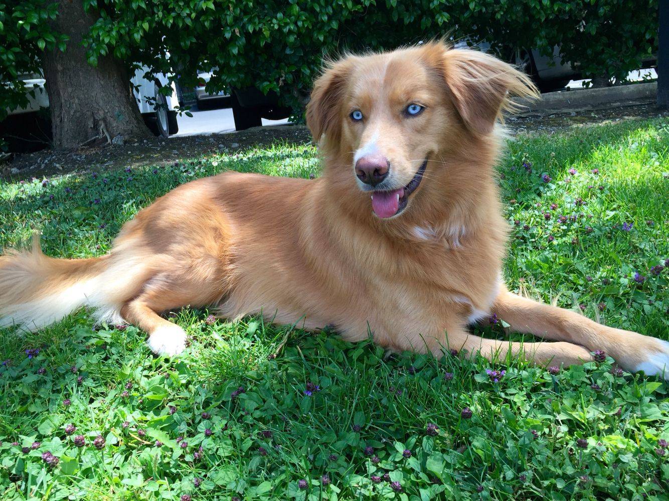 Золотистая шерсть и небесно-голубые глаза сделают этого песика самым красивым на собачьей площадке.