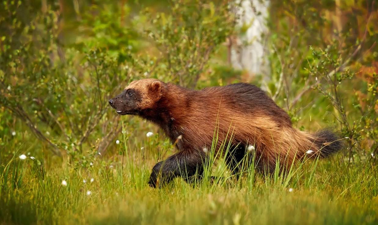 - Росомаха — искусно лазит по деревьям и отлично плавает. Факт, что это энергичное животное, которое может проходить большие расстояния, не останавливаясь на отдых.
