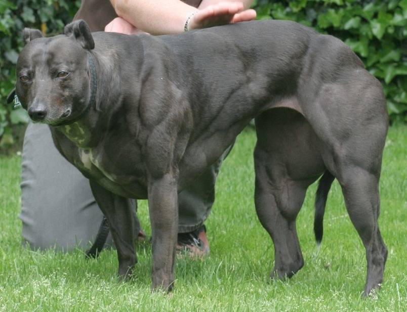 Это питомец среднего размера, с мускулистым и крепким телом. Внешний облик, а именно форма головы, широкая морда, мощная челюсть, позволяет отнести такую породу к бойцовской. Но по характеру это вполне миролюбивые и любвеобильные животные.