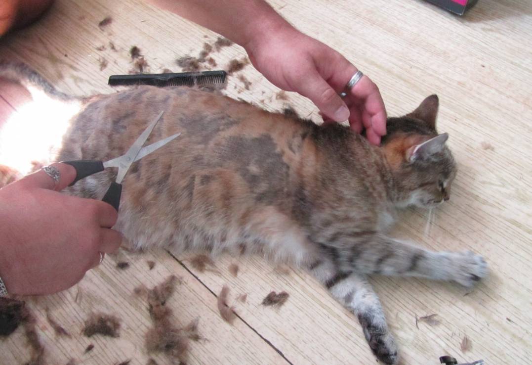 После стрижки животное необходимо искупать и высушить феном. Если кошка испытывает страх, можно удалить срезанные и прилипшие шерстинки путём обтирания её влажной салфеткой или замшевой тканью. В холодное время года следует создать удобный микроклимат без сквозняков в комнате, где находится питомец.