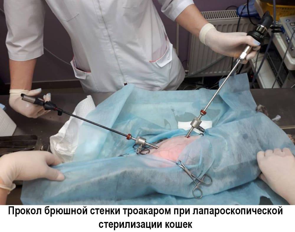 Боковой разрез. Этот способ не требует сложного послеоперационного ухода за швами. Его применяют для стерилизации бездомных кошек, которых сразу после операции выпускают на волю. Удаляют этим способом чаще только яичники.
